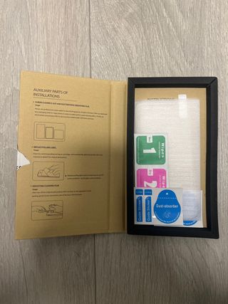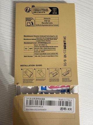 Kit di installazione per protettore schermo iPhone XR. Include kit di pulizia e adesivo antipolvere. Con guide di installazione.
