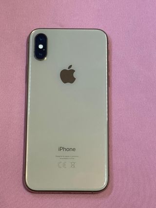 iPhone XS da 256GB in colore argento. Il lato presenta una rottura che non influisce sul funzionamento. La fotocamera è perfetta, include custodia e cavo. Batteria 79% originale, mai riparata.
