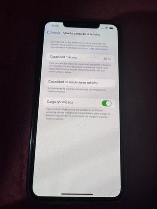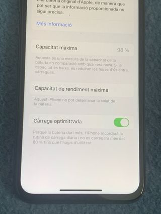 iPhone XS in perfette condizioni con una batteria al 98% della sua capacità massima. Capacità di 256GB. Carga optimizada attivata per prolungare la durata della batteria.