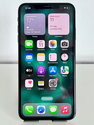 Telefono mobile Apple in colore nero con grande capacità di archiviazione. - Schermo da 6,5 pollici. - Fotocamera doppia da 12MP. - Chip A12 Bionic. - Resistenza all'acqua e alla polvere. Venduto per cambio a modello superiore. Salute della batteria all'80%. Incluse tre custodie, due originali Apple.