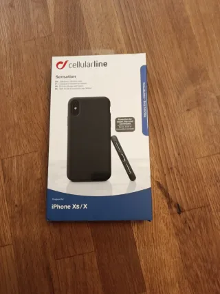 Custodia nera Cellularline Sensation per iPhone Xs/X. Offre protezione per i bordi, i tasti e i connettori. Finitura soft touch. Design aderente al telefono. Nuova, mai usata, con scatola originale intatta.