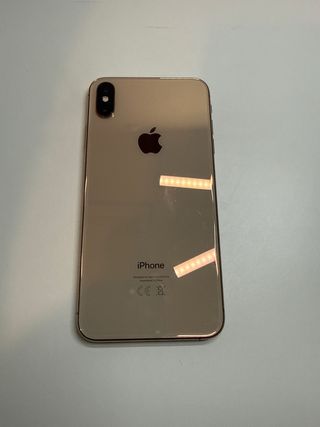 iPhone XS Max con finitura dorata e 64GB di memoria. - Schermo Super Retina HD. - Chip A12 Bionic. - Fotocamera dual da 12MP. - Resistente all'acqua e alla polvere IP68. Ha lo schermo posteriore rotto, ma con una cover è perfetto.