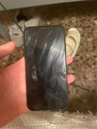 Telefono cellulare iPhone XS in colore nero. Presenta segni d'uso sullo schermo. - Schermo con crepe. - Cornice del telefono in buone condizioni. Per pezzi. Accendi