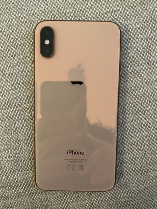 Telefono cellulare iPhone XS Max in color oro. Presenta crepe sul retro. - Schermo da 6,5 pollici. - Fotocamera posteriore doppia. - Chip A12 Bionic. Prezzo negoziabile.