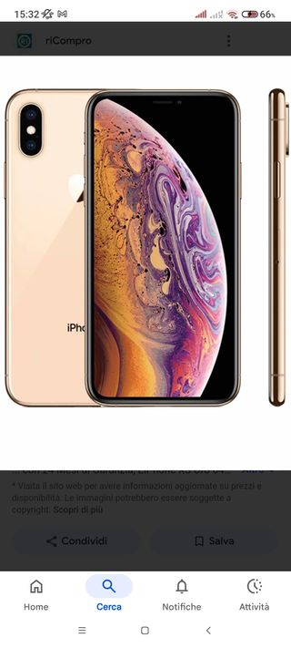 Vendo iPhone XS color oro. Display da 5,8 pollici. - Doppia fotocamera da 12 MP. - Chip A12 Bionic. - Memoria 64g