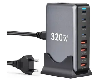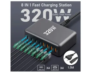 Caricatore C: 320 W 8 porte 4 USB-C e 4 USB-A, caricatore rapido PD 3.0 100 W adattatore per MacBook, laptop, iPhone e iPad