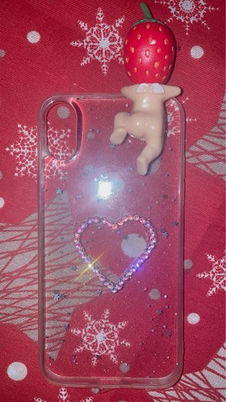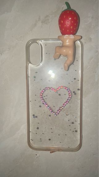 Vendo bellissima cover trasparente con glitter e cuore di strass, decorata con un simpatico angioletto con cappellino a fragola. Molto scenografica e luminosa. Per iPhone X/XS, Nuova/Usata pochissimo.🍓 - Design unico e originale. - Dettagli curati e colorati. - Materiale trasparente con glitter e stelline. Per qualsiasi info non esitate a contattarmi!✨