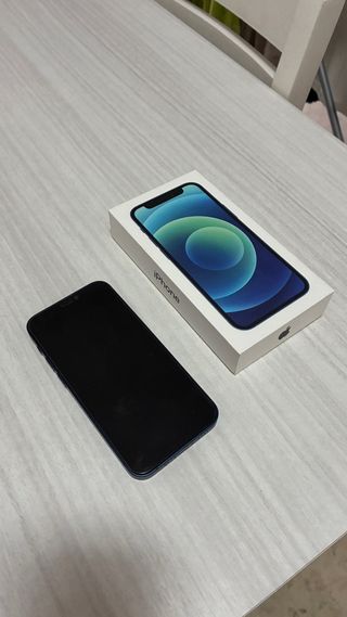 Elegante smartphone Apple iPhone 12 mini. - Colore blu e viola. - Design compatto e leggero.