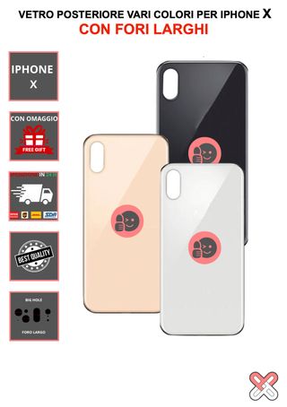 VETRO POSTERIORE PER IPHONE X CON LOGO E FORI LARGHI VARI COLORI DA SPECIFICARE IN CASO DI ORDINE