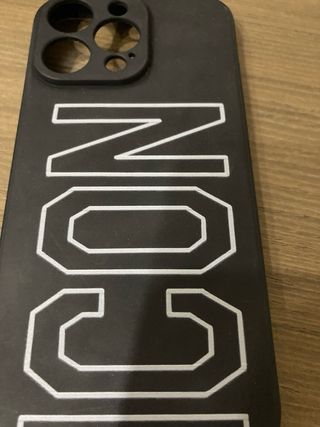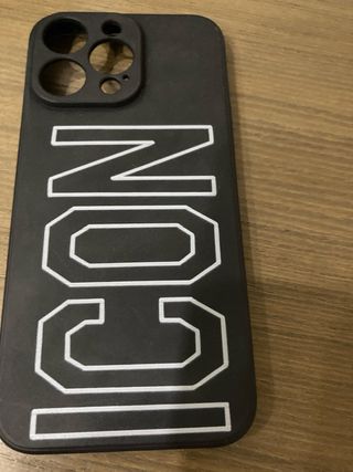 Cover nera per iPhone 15 Pro Max con scritta ICON. - Design moderno. - Protezione per il tuo smartphone.