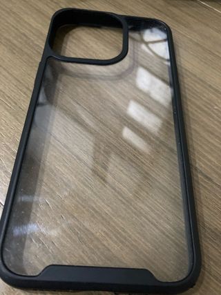 Cover trasparente per iPhone 15 Pro Max con bordi neri. - Protezione per il tuo smartphone. - Design elegante e minimalista.
