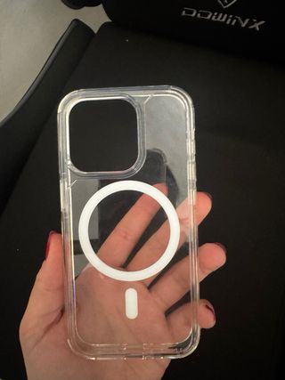 Cover trasparente con anello MagSafe integrato, pensata per iPhone. - Design trasparente per mostrare il colore del telefono. - Compatibile con la ricarica MagSafe.
