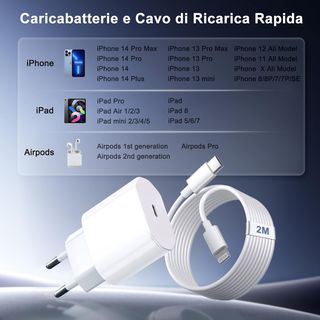 Caricatore per iPhone, 20W USB C Caricabatterie iPhone con 2M Cavo per i Phone 14/14 Pro/14 Pro Max/14 Plus/13/12/11, Caricatore USB C Spina Alimentatore Presa Carica Adattatore Muro Ricarica