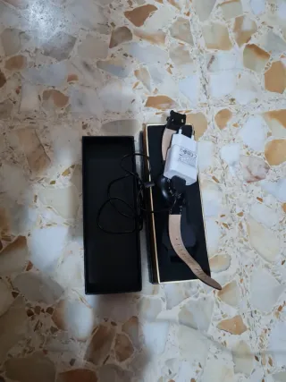 Smartwatch completo di caricatore. - Cinturino in pelle marrone. - Cassa nera. - Caricatore incluso.
