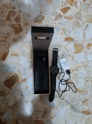 Smartwatch nero e marrone con caricatore