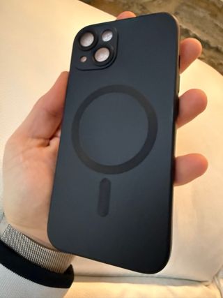 Custodia protettiva per iPhone 13 con design magnetico. Colore nero. Compatibile con MagSafe.
