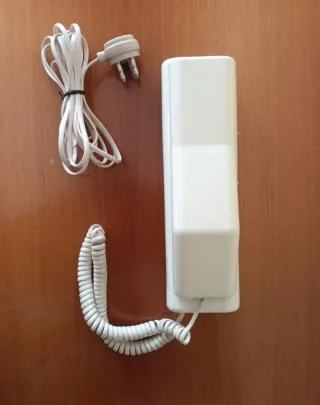 Telefono fisso Swatch Twin Phone edizione Delux,vintage anni '80/'90. Icona degli anni '90,design ispirato allo stile Memphis. - 2 cornette per permettere a 2 perone di parlare contemporaneamente con un terzo interlocutore. - Compositore alfabetico, 20 memorie. - Colore: bianco avorio/crema,definito anche "marshmallow ". - Cavo di alimentazione incluso. Funzionante sia con le chiamate in entrata che in uscita. Suoneria funzionante. Procedura di memorizzazione numeri non testata. Qualche minimo segno d'uso,come da fotografie.