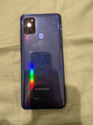 Smartphone Samsung A21s di colore nero, ideale per pezzi di ricambio. - Schermo con crepe. - Componenti interni non testati.