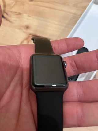 Orologio Apple Watch in colorazione Space Gray, completo di cinturino nero. - Cassa in alluminio. - Cinturino in fluoroelastomero.