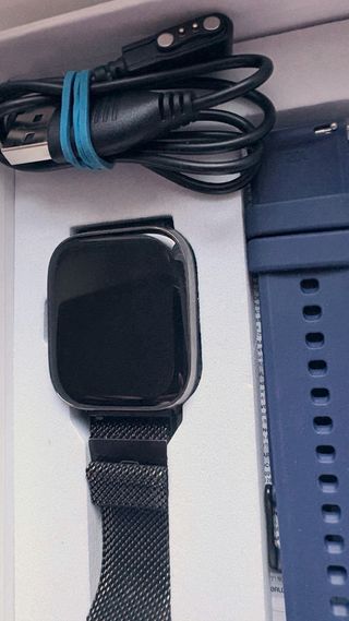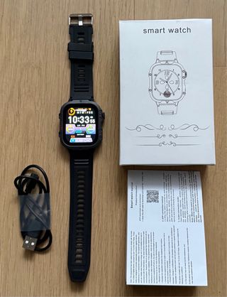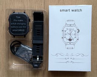 Smartwatch nuovo, ancora nella sua confezione originale. Compatibile con iphone e Android. Torcia. Modalità sport multiple. Cavo di Ricarica USB. Controllo remoto fotocamera. Tracker fitness ecc.. Materiale plastica Cinturino silicone Schermo: 1,83 Marca : Erun