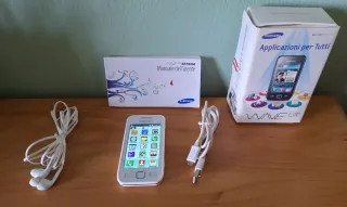 Cellulare Samsung WAVE Lite GT-S5250. Perfettamente funzionante, visto e piaciuto - Manuale dell'utente incluso. - Auricolari bianchi. - Cavo di ricarica USB.