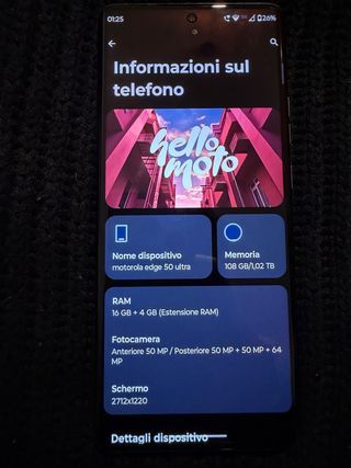 Smartphone Motorola Edge 50 Ultra con un anno di vita. Vendo in condizioni ottime per passaggio ad Iphone. Completo di alimentatore, cavo di ricarica, scatola originale e 2 cover. Ha leggeri graffietti sullo schermo ma sono impercettibili. Ai lati presenta leggeri segni di usura dati dalle cover.