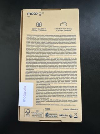 Telefono cellulare Motorola in colore grigio, con custodia protettiva inclusa. Scatola originale, 5200 mAh. - Design moderno ed elegante. - Fotocamera posteriore con molteplici lenti Sony. - Logo Motorola in rilievo.