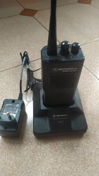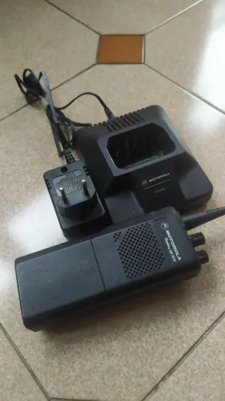 Radio portatile Motorola Radius GP300. CON CARICABATTERIE E ANTENNA NUOVA. - Modello: GP300 UHF, 5 toni. - Frequenza: UHF - Colore: Nero. In vendita walkie-talkie, caricatore, antenna nuova e batteria con poca carica. L'attrezzatura funziona perfettamente. Venduto come collezione, pezzi, attrezzature radio, UHF, trasmettitore. Disponibili altri 2 walkie-talkie.