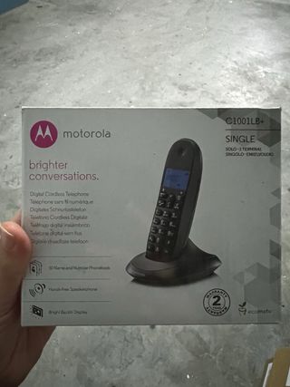 Telefono cordless Motorola in colore nero. Un dispositivo pratico e facile da usare. Design ergonomico. Tastiera numerica completa. Schermo di facile lettura.