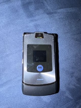 Cellulare Motorola V3i di colore argento. - Design sottile e iconico. - Fotocamera integrata.