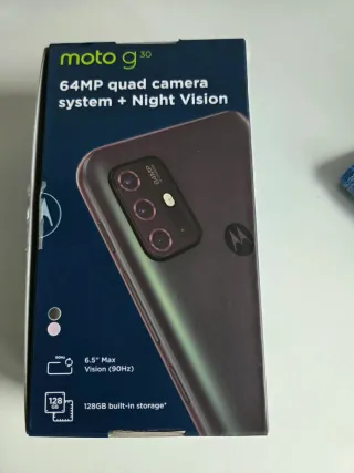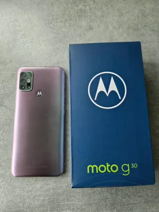 Telefono mobile Motorola G30 in un affascinante colore viola. - Fornito con protezione schermo in gel. - Design elegante e moderno. - Fotocamera posteriore versatile. - Logo Motorola sul retro.