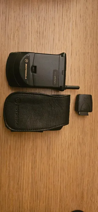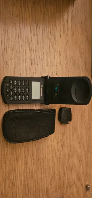 Telefono cellulare classico Motorola Startac, ideale per collezionisti. Un design iconico. Include: - Custodia in pelle nera. - Adattatore di ricarica.