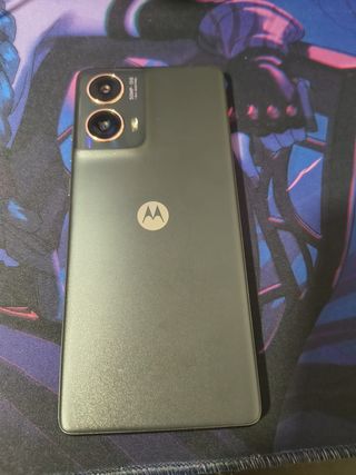 Telefono cellulare Motorola in colore verde. Con 256 GB di memoria ROM. Design moderno ed elegante. Nella sua confezione originale con custodia e vetro temperato. Fotocamera posteriore con più lenti.