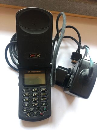 Iconico telefono cellulare Motorola StarTac, modello TIM, ideale per collezionisti. con difetti al caricabatterie. - Design a conchiglia. - Logo TIM visibile.