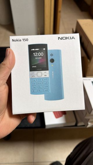Telefono mobile Nokia 150 in confezione originale. Colore blu e nero. Modello Nokia 150.