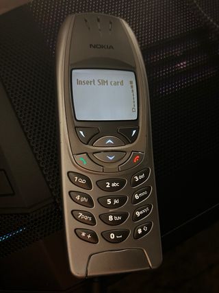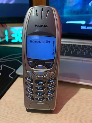 Telefono cellulare Nokia 6310i in color argento. Un classico della telefonia mobile. Design iconico e robusto. Tastiera numerica completa. Schermo nitido per la sua epoca.