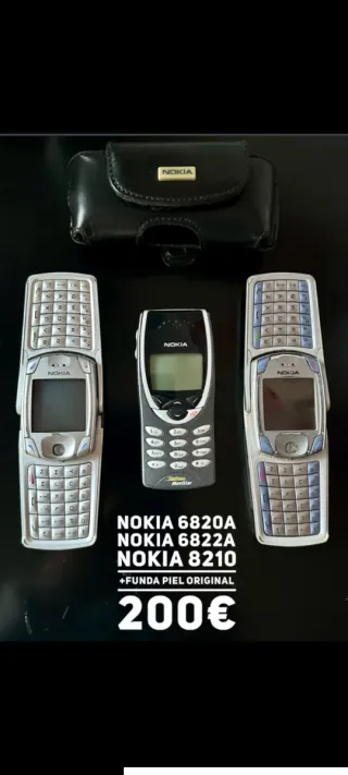 In vendita lotto di tre telefoni cellulari Nokia classici, modelli 6820A, 6822A e 8210. Include custodia in pelle originale.