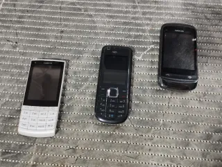 Confezione di tre telefoni cellulari Nokia in diversi colori. - Un telefono di colore bianco. - Due telefoni di colore nero. Nokia x3 bianco Nokia C2 nero con schermo deliazante Nokia 100 nero Con caricatori Funzionano perfettamente