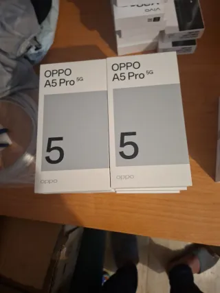 Confezione da 10 telefoni Oppo A5 Pro 5G. 8 GB di RAM e 256 GB di memoria. Modello: A5 Pro 5G. Connettività: 5G.