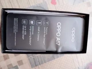 Telefono mobile Oppo A17. - Colore nero. - Schermo da 6,56 pollici. - Fotocamera principale da 50 MP. - Batteria da 5000 mAh. Scatola regalo con custodia pieghevole inclusa.