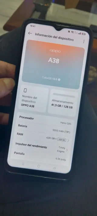 Telefono mobile Oppo A38 con grande capacità di archiviazione. - Schermo da 6,56 pollici. - Processore Helio G85. - Batteria da 5000 mAh. - 4 GB di RAM + 4 GB di RAM virtuale. È perfetto. Si vende per non essere usato.