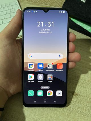 Cellulare OPPO. Funziona perfettamente, se si rimuove la pellicola protettiva lo schermo è nuovo con un piccolo urto in un angolo. Lo schermo è fissato con del nastro adesivo e si stacca leggermente. Custodia con un mese di utilizzo. - Schermo con notch. - Connettività Wi-Fi.