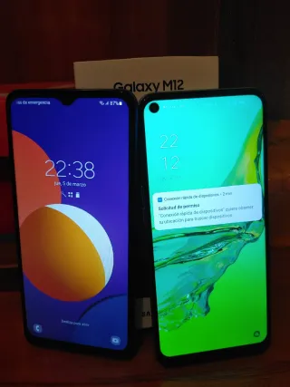 In vendita due telefoni cellulari, un Samsung M12 e un Oppo A53s 4g. - Samsung M12 in colore blu. - Oppo A53s 4g in colore verde. Batterie funzionanti con caricabatterie. 4/64 GB, batteria 5000 mAh. Android 13 e 12.