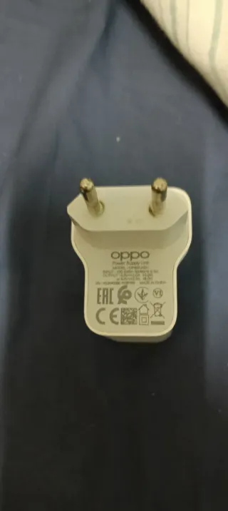 Adattatore di corrente OPPO per carica rapida. Modello: OPRAH. Ingresso: 100-240V~50/60Hz 0.6A. Uscita: 5.0V=2.0A 10.0W o 9.0V=2.0A 18.0W. Prodotto in Cina. Certificazione EAC e CE.