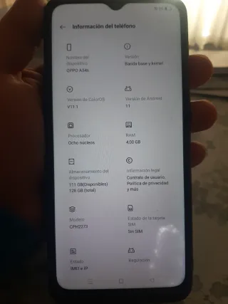 Sistema operativo Android 11 (ColorOS 11.1). Processore MediaTek Helio G35 Octa-core 2.3GHz. Schermo LCD IPS HD+ (720x1600p) 6.52" 269ppi. Memoria 4GB RAM e capacità di 64GB. Prodotto con garanzia. Spedizioni in tutta la Spagna. Visitaci nel nostro negozio in calle sambara 101, Madrid. Seguici su Facebook e Instagram tutiendadesegundamano. Web tutiendadesegundamano