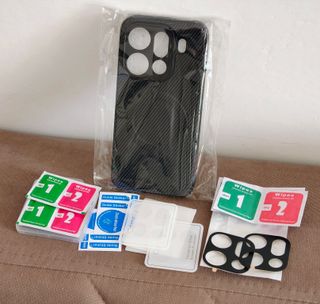 Vendo a 15 € un kit composto da: - n.1 Cover in TPU effetto carbonio, col. Nero - n.2 Protezioni forate in alluminio per blocco fotocamere, col. Nero - n.2 Protezioni in vetro per lenti e blocco fotocamere, col. trasparenti NUOVI e MAI UTILIZZATI.