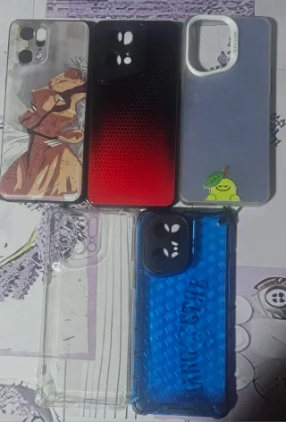 Set di cover per Oppo Find X5 Pro. - Cover trasparente. - Cover blu con rilievo. - Cover grigia con disegno di limone. - Cover nera con sfumatura rossa. - Cover con design di personaggio anime. - 3 di esse nuove.
