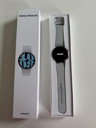 Samsung Galaxy Watch 6 usato ma in ottime condizioni, perfettamente funzionante. Riporta alcuni segni sulla ghiera, come da foto. Il vetro è perfettamente intatto. La cassa è color argento. Oltre al cinturino di serie invio anche 3 altri cinturini non originali, usati ma in buone condizioni.