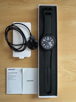 Orologio intelligente Samsung Galaxy Watch 5 in colore nero. Include il suo caricabatterie. Design moderno ed elegante. Cinturino comodo e regolabile. Senza alcun graffio. Funziona perfettamente.