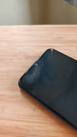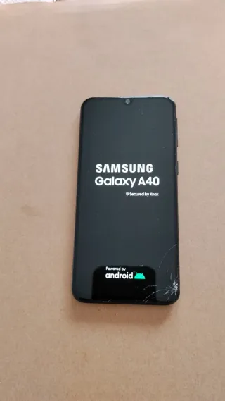 Telefono mobile Samsung Galaxy A40 in colore nero. CRISTALLO ROTTO Funziona perfettamente - Schermo con notch. - Fotocamera frontale centrata. - Logo Samsung sul retro.